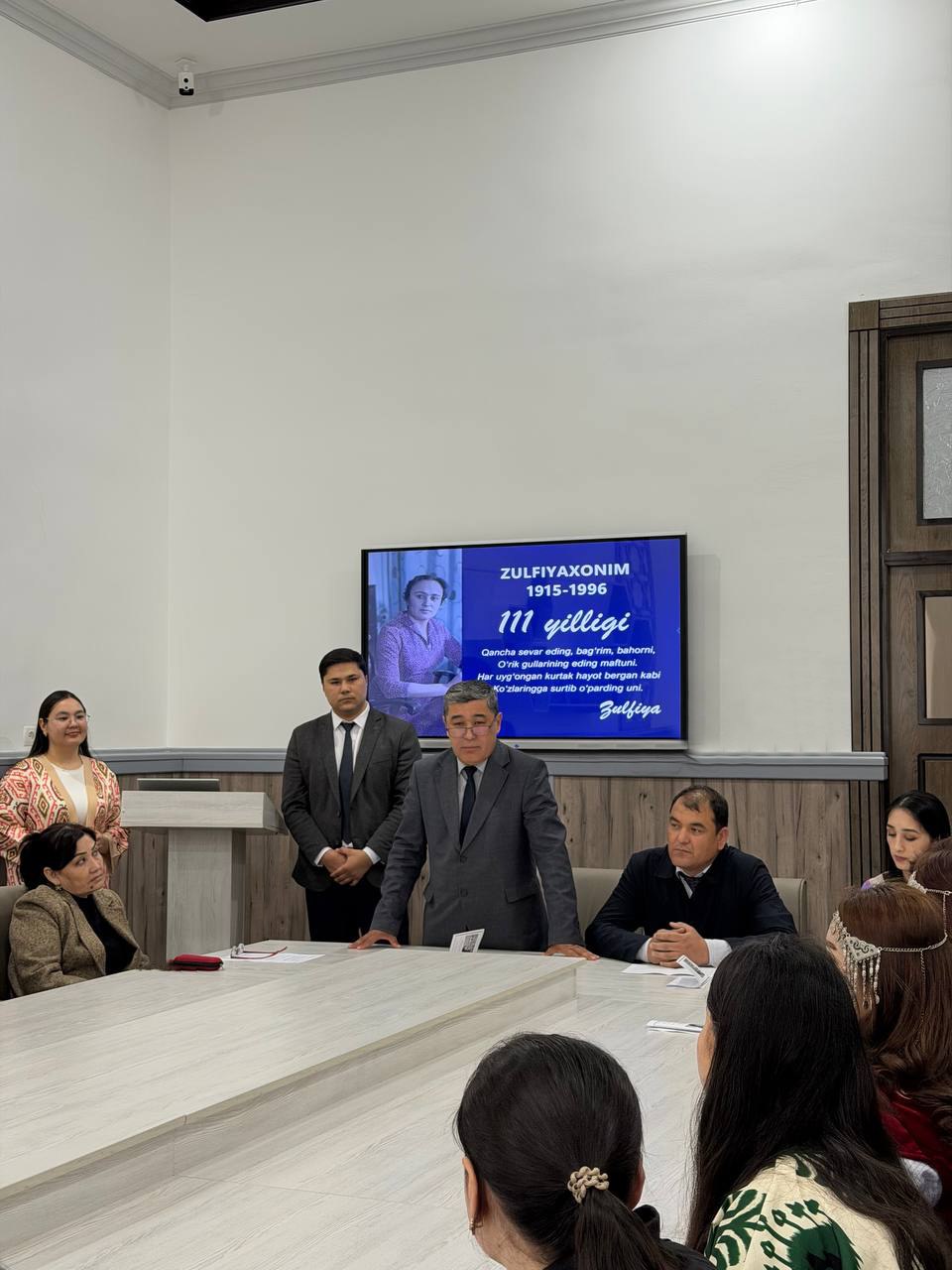Samarqand iqtisodiyot va servis instituti tillarni o‘qitish kafedrasi tashabbusi bilan o‘zbek adabiyotining yirik namoyandasi, O‘zbekiston xalq shoiri Zulfiya tavalludiga bag‘ishlangan “Bahor tarovati – Zulfiya she’riyati” mavzusida davra suhbati tashkil etildi.