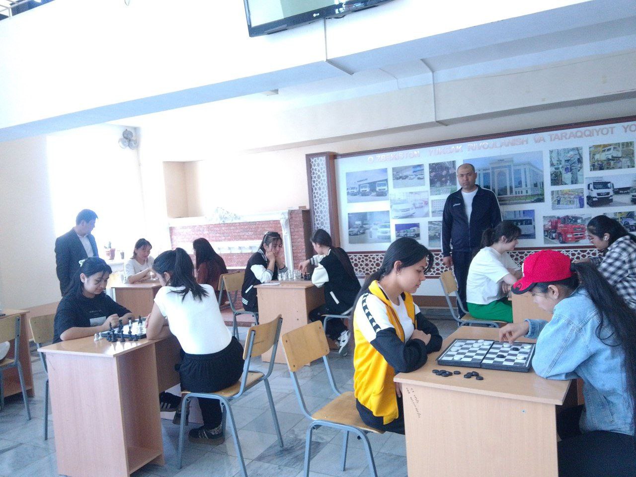 Samarqand iqtisodiyot va servis instituti bank-moliya xizmatlari fakulteti tyutorlari hamda jismoniy madaniyat kafedrasi o‘qituvchisi hamkorligida fakultet qizlari o‘rtasida sportning shashka va shaxmat turlari bo‘yicha musobaqa tashkil etildi.