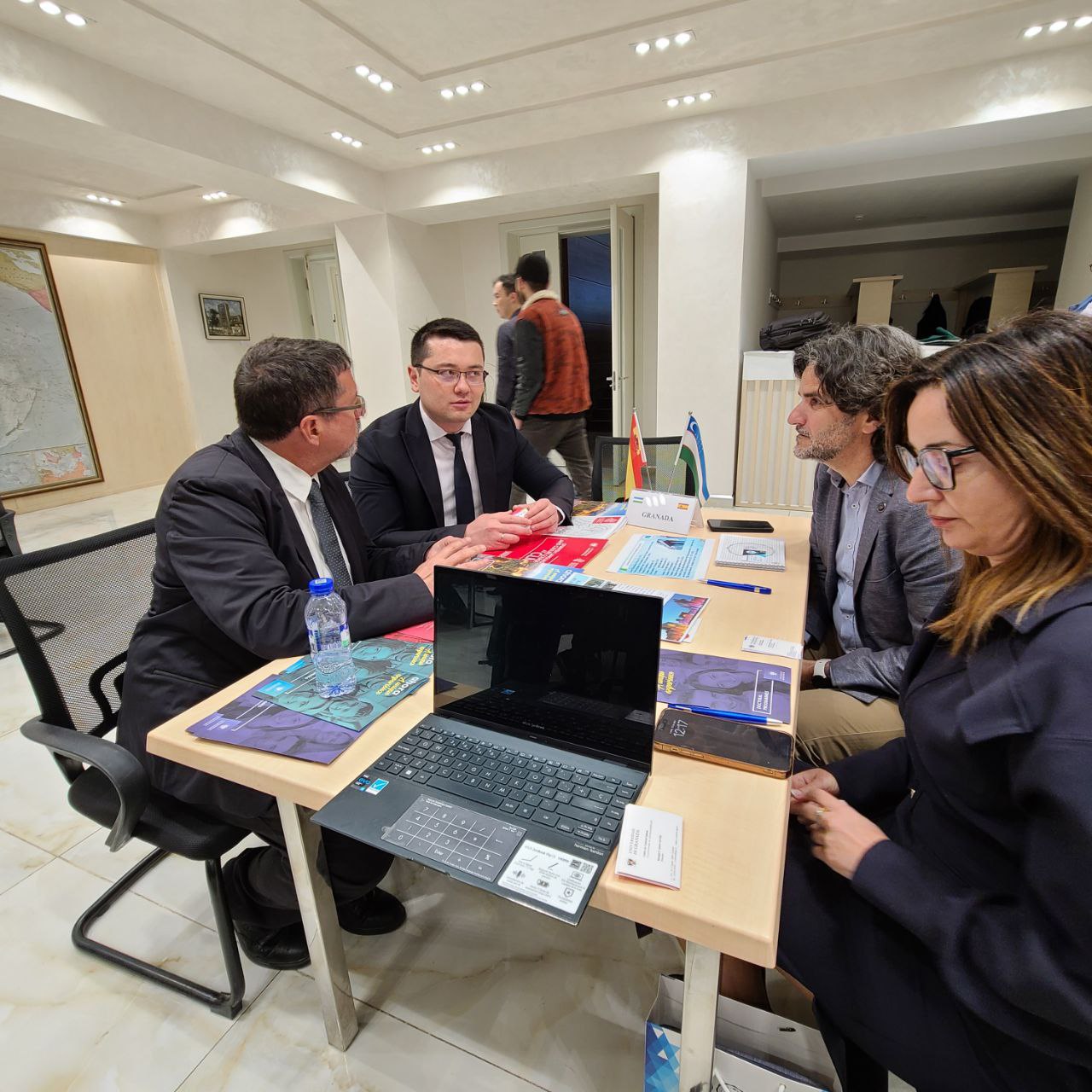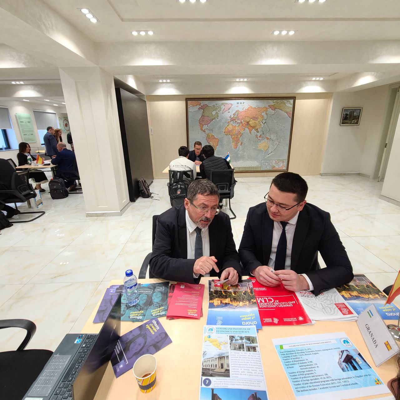 Davra suhbatida Samarqand iqtisodiyot va servis instituti vakillari ham ishtirok etishdi. Ispaniyaning Granada (Inmaculada Marrero - Vice Rector for Internationalization, Enrique Quero - Director of the Center for Slavic Cultures, Juan Sánchez Fernández - Director-Gerente del Centro de Lenguas Modernas) va Huelva (Maria Antonia Peña - Rector, María Teresa Aceytuno - Vice Rector for Internationalization and Global Engagement) universitetlari bilan B2B shaklidagi mazmunli suhbatlar tashkil etildi.