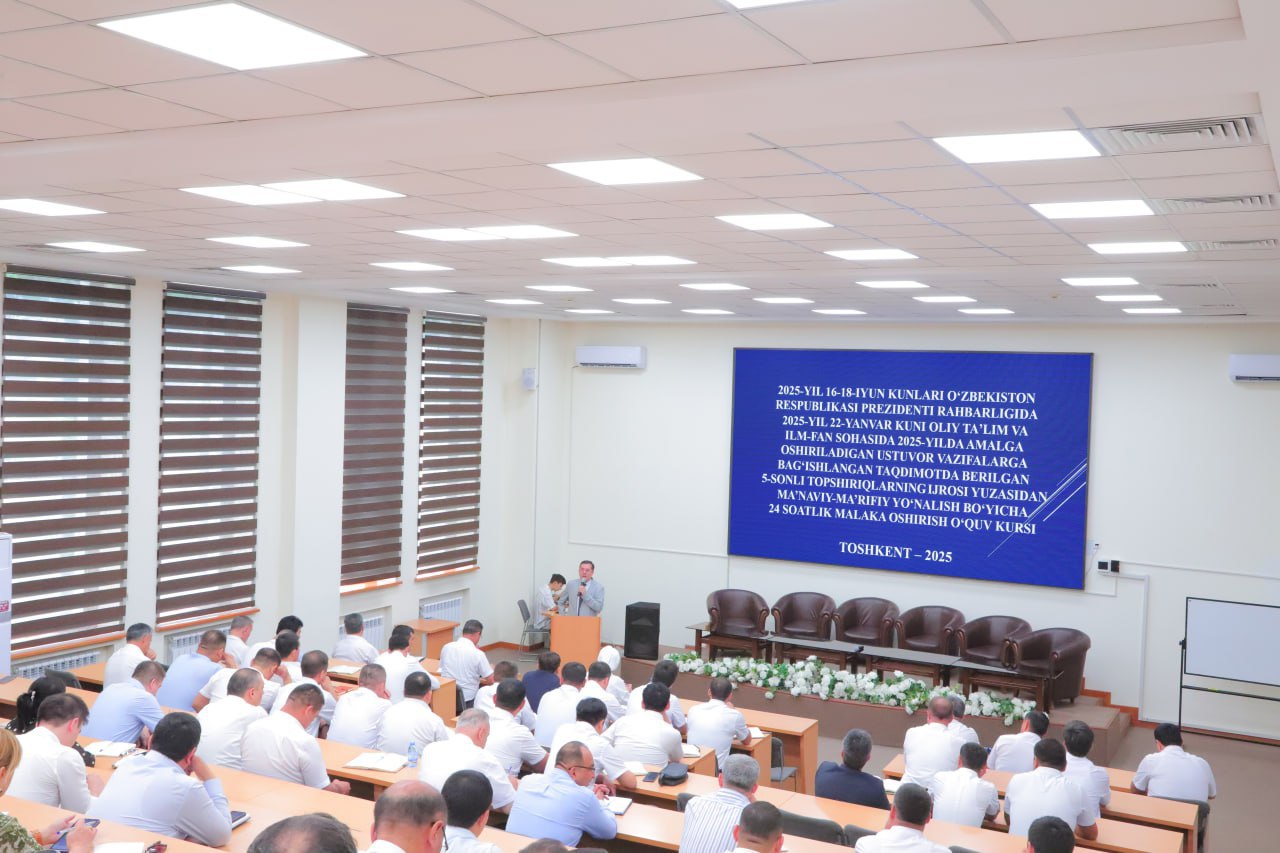 Oliy ta’lim, fan va innovatsiyalar vazirligi hamda Respublika ma’naviyat va ma’rifat markazi hamkorligida 2025-yil 16–18-iyun kunlari barcha oliy ta’lim tashkilotlarining (davlat, nodavlat va xorijiy) yoshlar masalalari va ma’naviy-ma’rifiy ishlar bo‘yicha birinchi prorektorlari (direktor o‘rinbosarlari) uchun qisqa muddatli o‘quv kursi tashkil etildi. Ushbu kursda Samarqand iqtisodiyot va servis instituti yoshlar bilan ishlash, ma’naviyat va ma’rifat bo‘limi boshlig‘i A.To‘rayev ham faol ishtirok etmoqda.