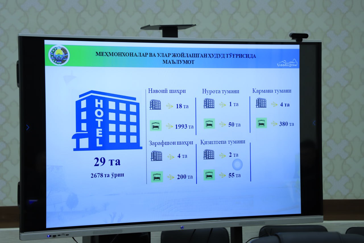 Joriy yilning 8-aprel kuni boʻlib oʻtgan majlisda yuqoridagi hududlarda tashkil qilinadigan infoturlar, tumanlarning turistik salohiyati va turizmni rivojlantirish imkoniyatlari boʼyicha taqdimotlar, turpaketlar va turistik marshrutlar ishlab chiqish imkoniyatlari va boshqa amalga oshirilayotgan ishlar holati koʻrib chiqildi.