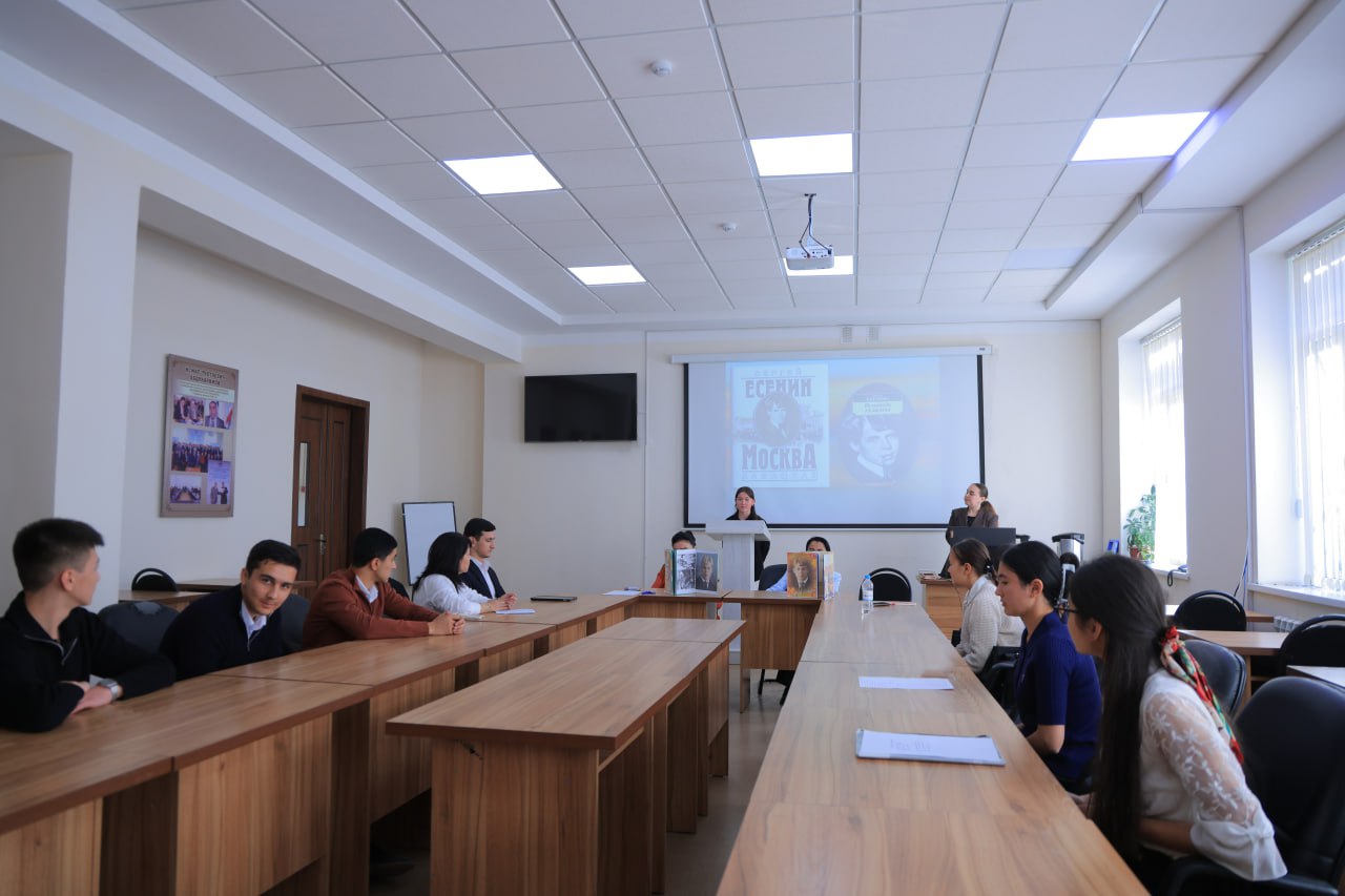 Samarqand iqtisodiyot va servis instituti o‘zbek tili va adabiyoti kafedrasi qoshida faoliyat olib boradigan Rus tili to'garagining iqtidorli talabalari ishtirokida mashhur rus shoiri Sergey Eseninning 130 yilligi munosabati bilan “Моё слово о Есенине” nomli badiiy kecha tashkil etildi.