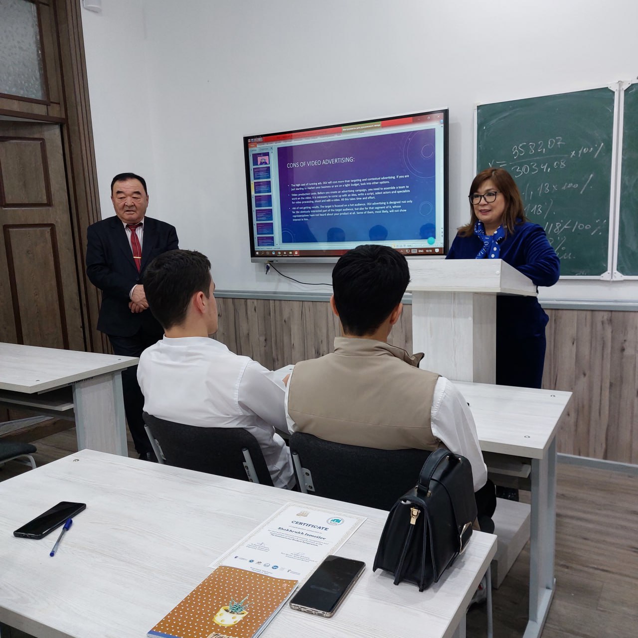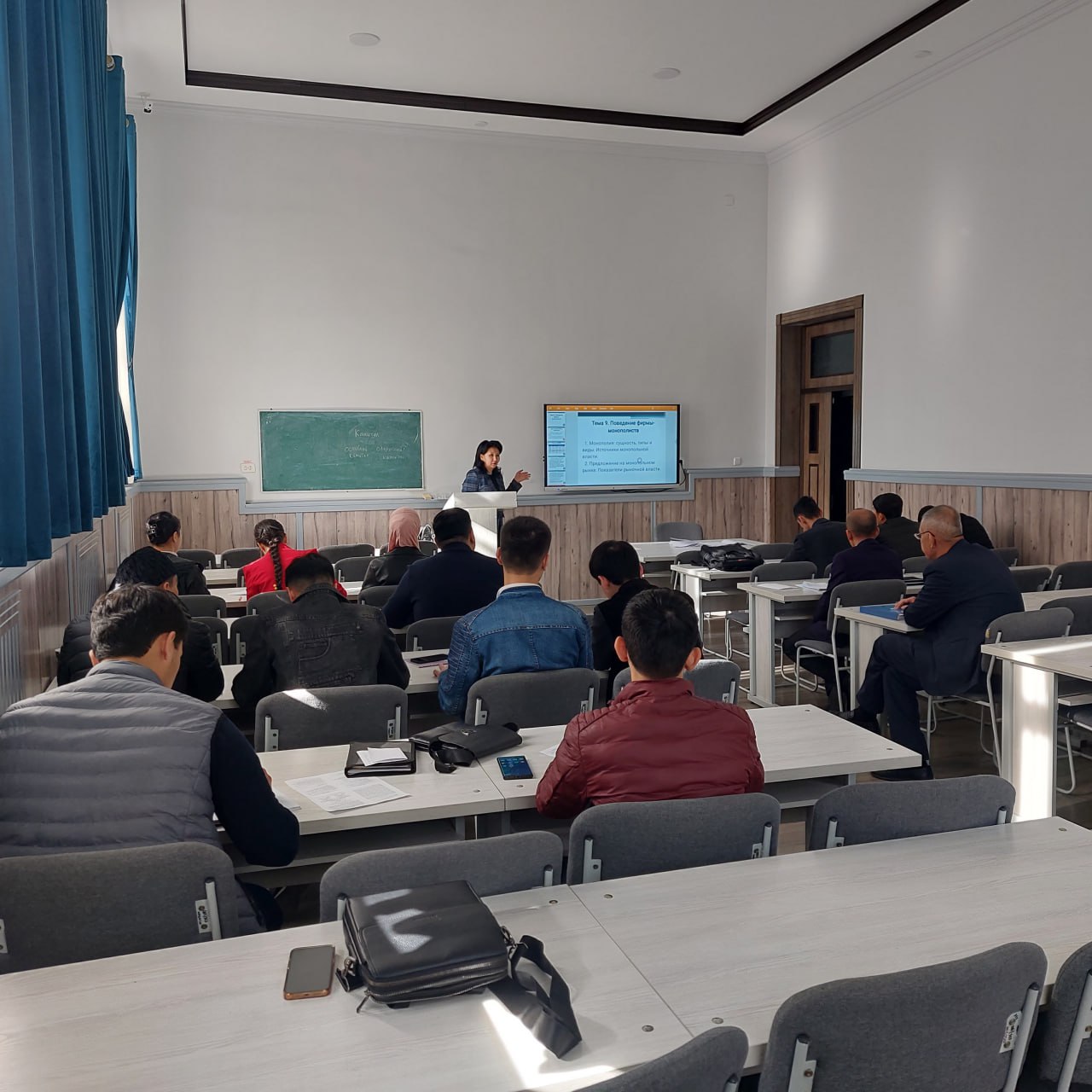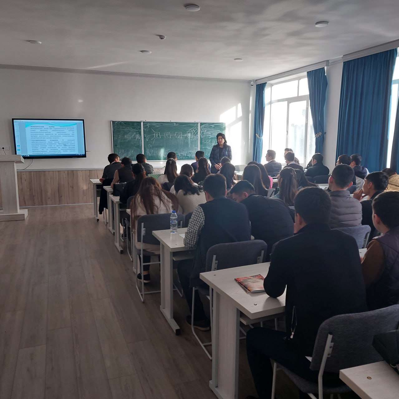 M.Auezov nomidagi Janubiy-Qozog‘iston universiteti Iqtisodiyot nazariyasi kafedrasi mudiri, i.f.n., dotsent Mergenbaeva Aziza Toymahambetovna, Iqtisodiyot nazariyasi kafedrasi dotsenti, i.f.n. Urazbayeva Gulnara Jarasovna va Iqtisodiyot nazariyasi kafedrasi dotsenti, i.f.n. Abishova Aijan Urinbasarovnalar institut talabalari uchun o‘quv-mashg‘ulotlarini o‘tkazishmoqda.