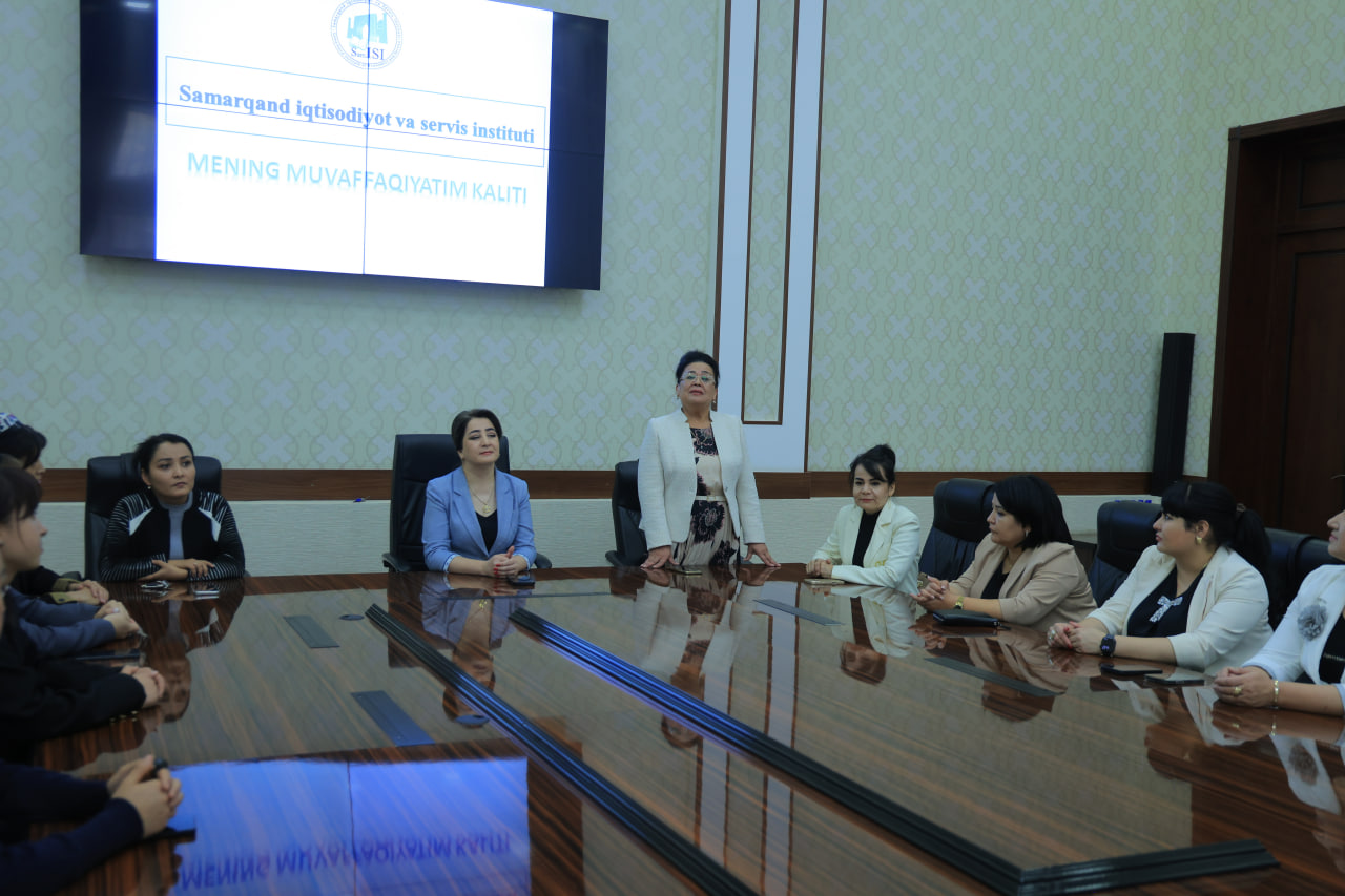 Samarqand iqtisodiyot va servis institutida xotin-qizlar kengashi tashabbusi bilan “Mening muvaffaqiyat kalitim” mavzusida davra suhbati tashkil etildi. Ushbu davra suhbatida institutning faol ayol professor-o‘qituvchilari, tyutorlar hamda talaba qizlar ishtirok etdilar.