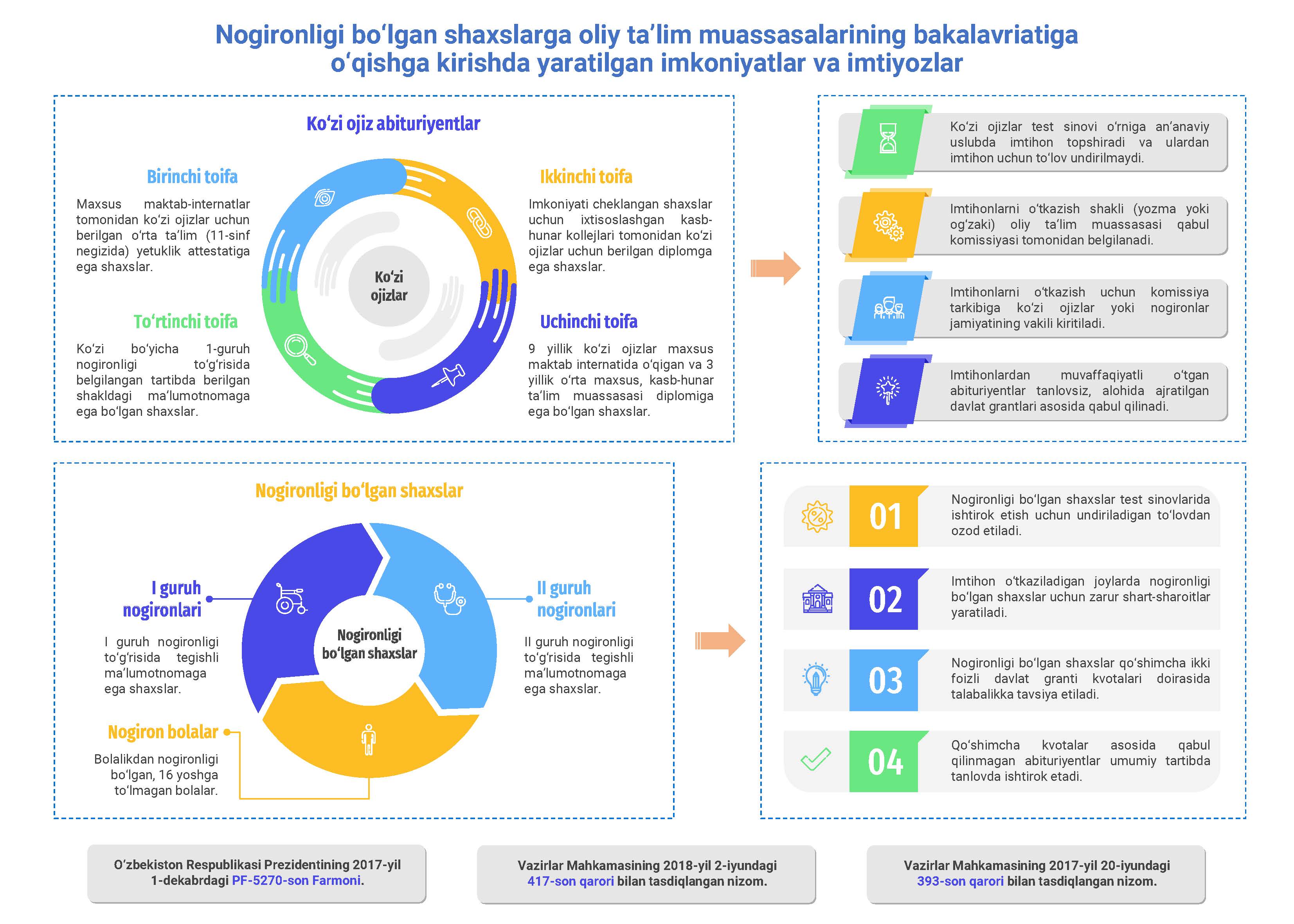 Nogironligi bo‘lgan shaxslarga oliy ta’lim muassasalarining bakalavriatiga o‘qishga kirishda qanday imtiyozlar berilishini bilasizmi?!